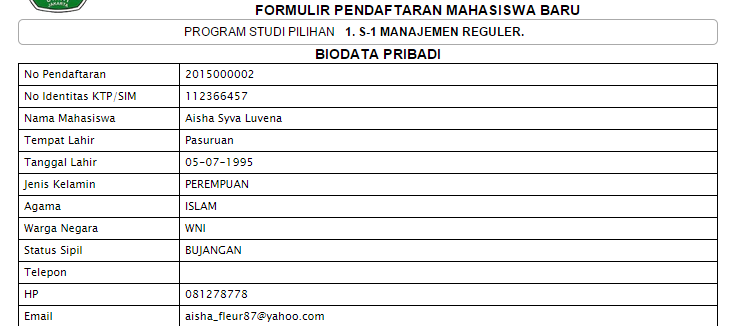 Hasil Cetak Formulir