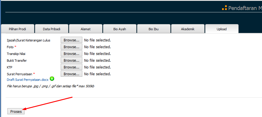 Jika semua data telah terisi maka klik tombol PROSES