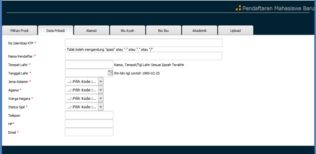 Lengkapi semua form PMB. Keterangan :